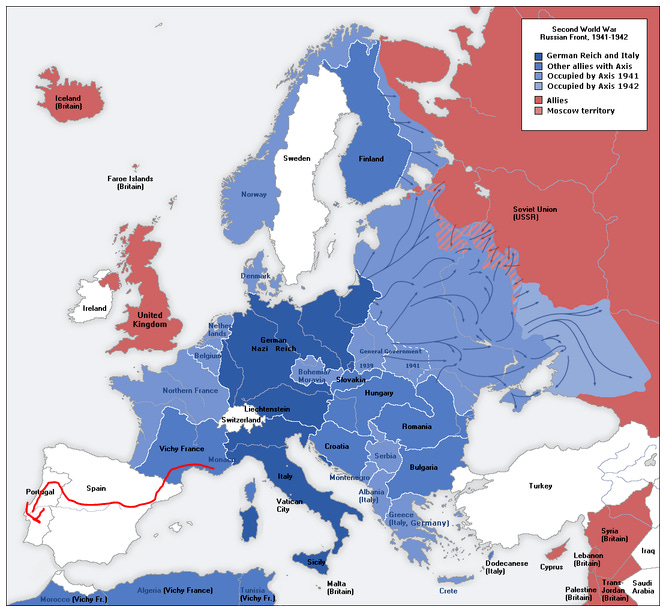 Portugal was another particular case, albeit one which I have not been able to study as closely as Spain’s. The US’ National Public Radio describes here the ordeal of Aristides de Sousa Mendes, the Portuguese consul in Bordeaux who allegedly gave out 30,000 visas to refugees fleeing occupied Germany — who presumably made into Portugal, quite obviously, via Spain.