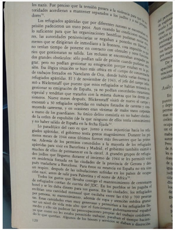 Nicolás Valle, for long a foreign correspondent for Catalan’s public TV3, told me in a private conversation about several possible, and yet unconfirmed, names of Jews returned to Vichy that emerged in an investigation he conducted for his network. Avni wrote that “there is no exact information” on alleged expulsions to France, but it is believed, in the abstract, that there were some cases, without details, and in others the authorities were bribed to avoid expulsion. I have yet to read of a single case of expulsion identified by name.